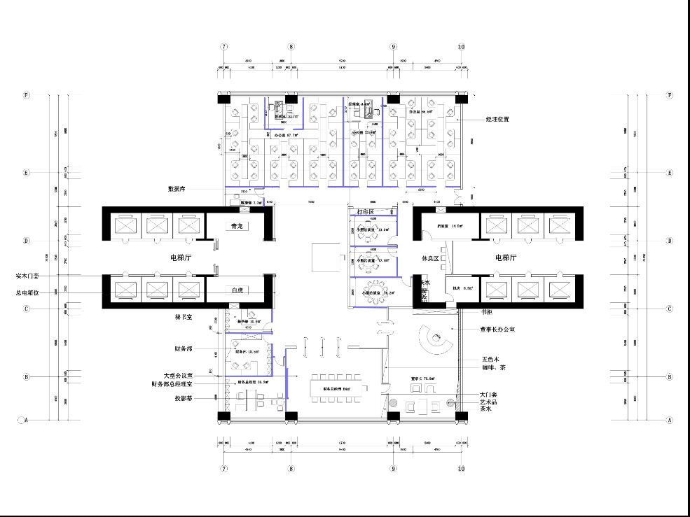 | 密拼實木門的設計是本案的一大亮點,它在以后的方案設計中起到一定的主導作用,會議室主講臺隔墻,中間是淺藍烤漆玻用以書寫,筆托設計的是鑲嵌式的,是為了防止人員碰撞。兩邊是黑色KM板加以裝飾,使得整面隔墻樸素,內斂,大氣! |